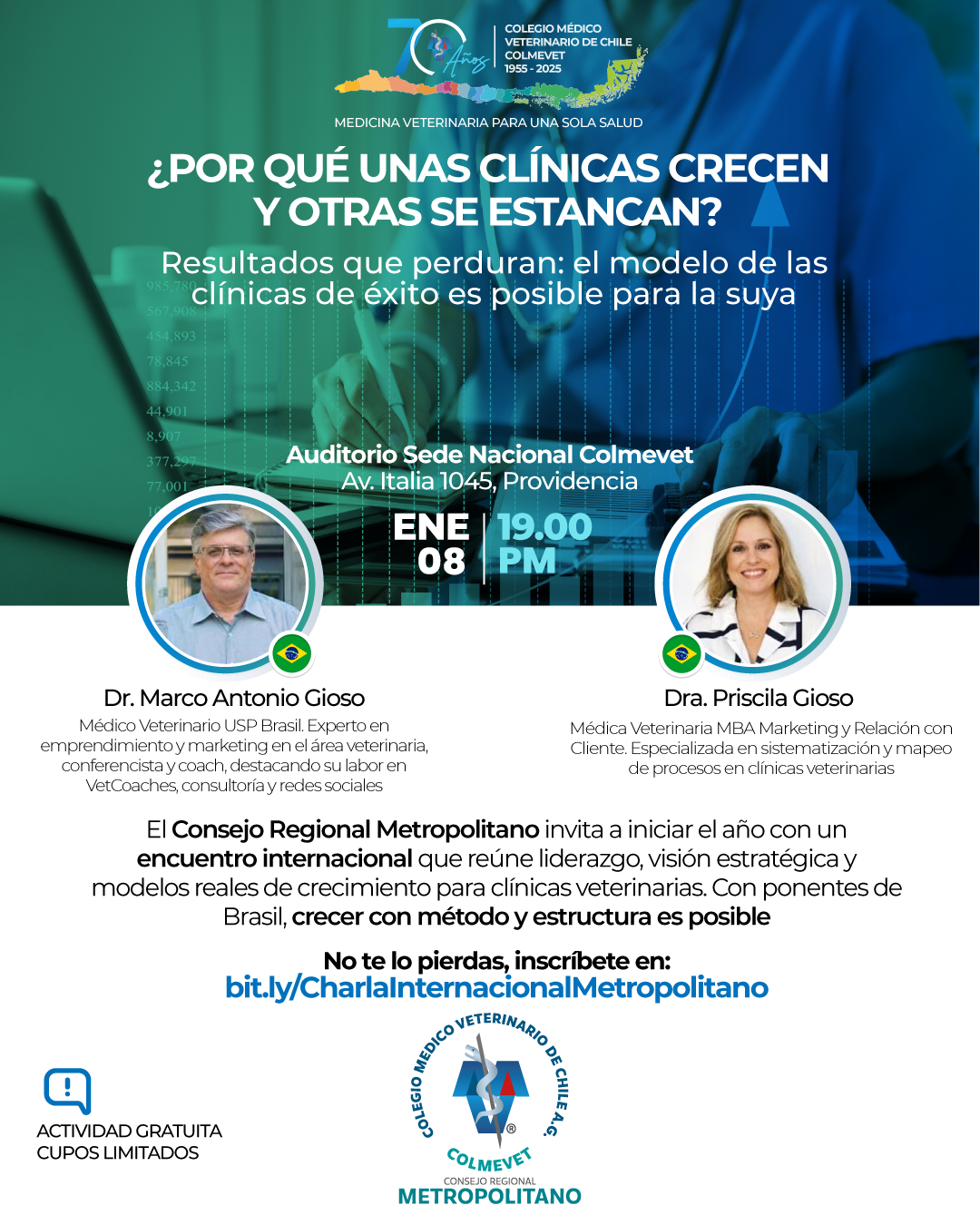 El Consejo Regional Metropolitano invita a iniciar el año con un encuentro internacional que reúne liderazgo, visión estratégica y modelos reales de crecimiento para clínicas veterinarias. Con ponentes de Brasil, crecer con método y estructura es posible.