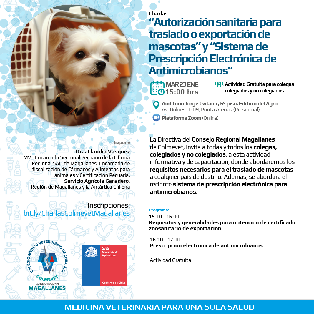 Inscripciones en: bit.ly/CharlasColmevetMagallanes